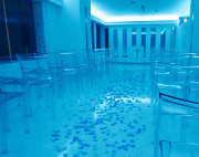 広い窓から見えるのは青い海とレインボーブリッジ。開放感あふれるスペースで列席者の方にもゆっくりくつろいだひと時を。挙式前後30分のご利用です。(Premories限定)