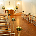 お二人の旅立ちをひっそり祝福する会場の名脇役たち。生花による祭壇花がお二人を一層引き立てます。